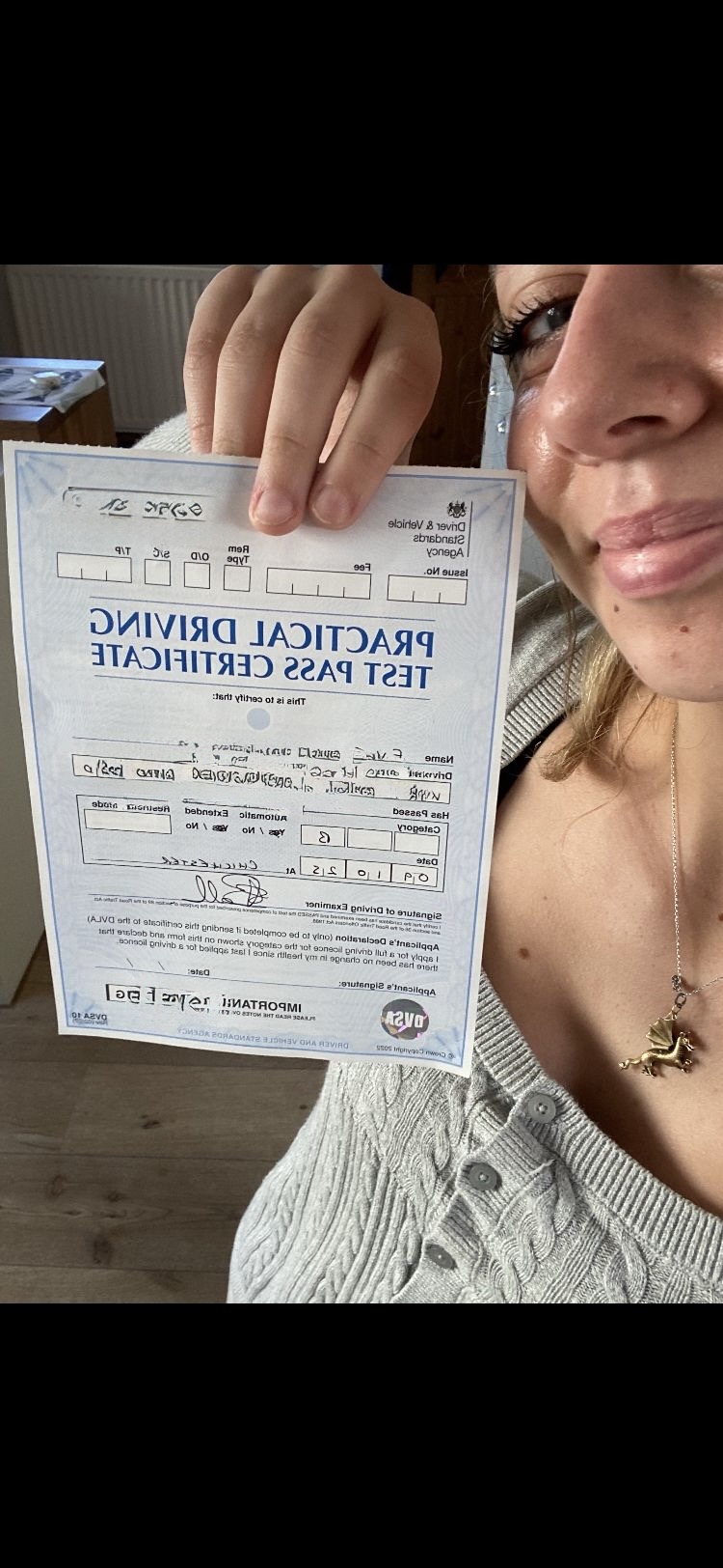 Lovely driving instructor (Donna) can’t thank her enough!