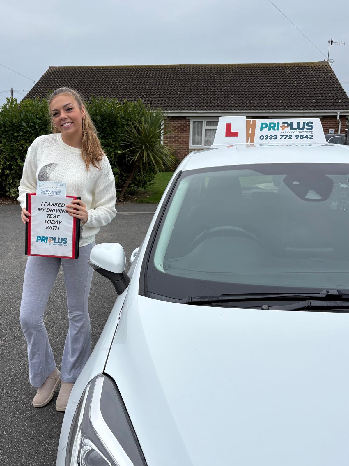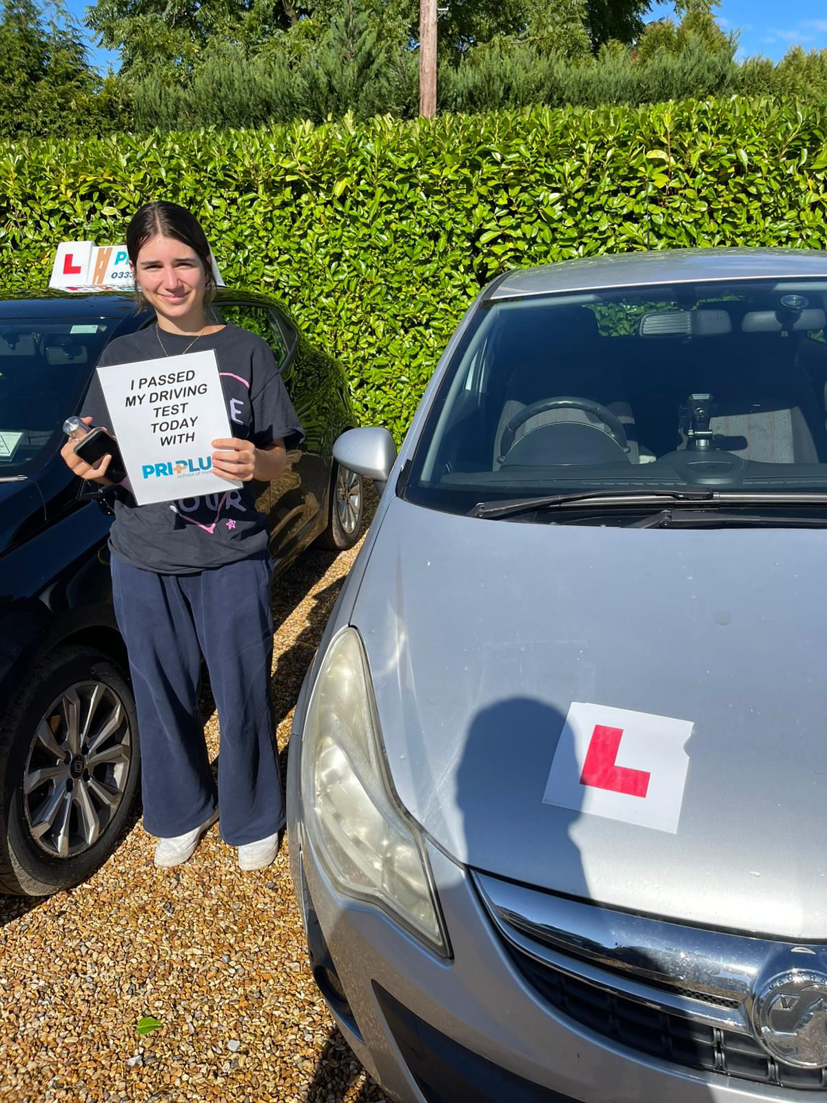 I would really recommend Penny as a driving instructor because she was calm, friendly and really helped me to be safe and confident on the road. I improved more and more after each lesson and I could not have passed without her!